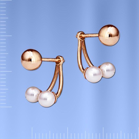 Примерные размеры изделия - высота: 20 мм, ширина 11 мм, диаметр жемчуга ¢ 5 и ¢ 6 мм.