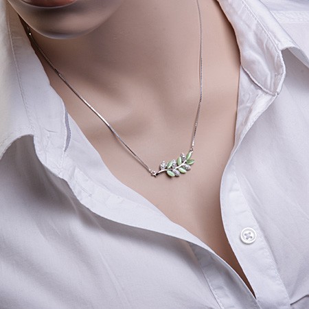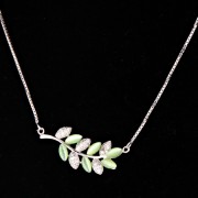 Halskette aus Silber 925°. Länge ca.50 cm. Anhänger mit Quarz  (6 x 3 mm), Fianiten ¢ 1 mm. Länge Anhänger ca.12 mm., Breite ca. 32 mm