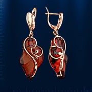 Schöne Ohrhänger aus massiven 585er (14kt) russisches Rotgold gestaltet mit je einem großen zargefassten Bernstein (ca.30 x 16 x 6 mm). Die rechteckige Bernsteine bilden den harmonischen Blickfang in einem warmen Tönen. Die gesamten Ohrhängermessen ca.47 x 16 mm sind ausgestattet mit Stift und Klappbrisur und nur bei durchstochenen Ohrläppchen tragbar.