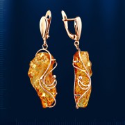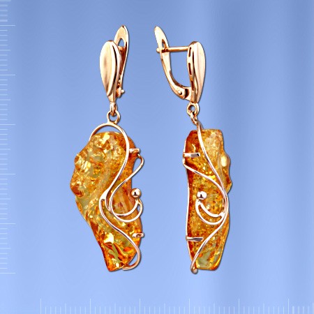 Schöne Ohrhänger aus massiven 585er (14kt) russisches Rotgold gestaltet mit je einem großen zargefassten Bernstein (ca.30 x 13 x 6 mm). Die rechteckige Bernsteine bilden den harmonischen Blickfang in einem warmen Tönen. Die gesamten Ohrhängermessen ca.50 x 17 mm sind ausgestattet mit Stift und Klappbrisur und nur bei durchstochenen Ohrläppchen tragbar.