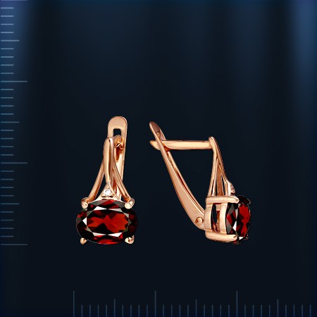 Вставки: 2 граната (овал 8.0 х 6.0 мм 0.592 ct), 2 фианита ¢ 1,25 мм