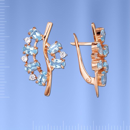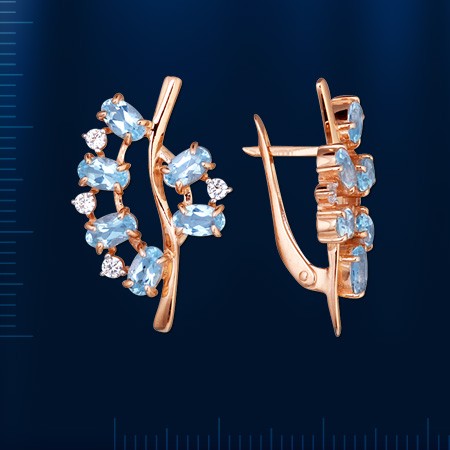 Rotgold 585° verziert mit 12 Topasen (5.0 x 3.0 mm 0.650 Ct) und 8 Fianitenen ¢ 2.0 mm 0.104. Diese schillernden Ohrringer werden Sie mit Schönheit und Eleganz begeistern.