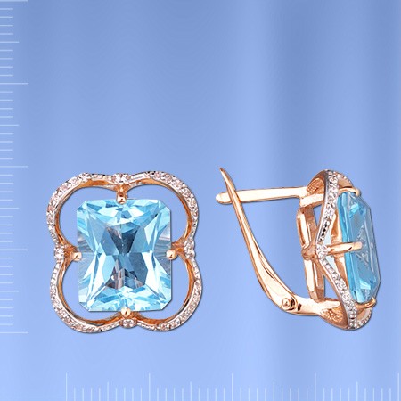 Rotgold 585° verziert mit 2 Topasen (12.0 x 10.0 mm 2.893 Ct) und 56 Fianitenen ¢ 1.0 mm. Diese schillernden Ohrringer werden Sie mit Schönheit und Eleganz begeistern.