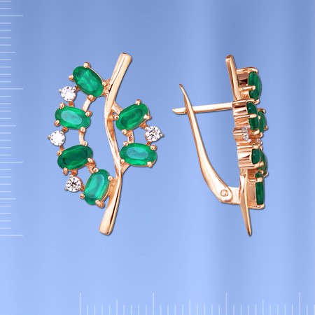 Ohrringer aus Rot/Weißgold 585° verziert mit 12 Chrysopras (5.0 x 3.0 mm 0.470 Ct) und 8 Fianitenen ¢ 2.0 mm 0.104. Diese schillernden Ohrringer werden Sie mit Schönheit und Eleganz begeistern.
