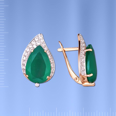 Ohrringer aus Rot/Weißgold 585° verziert mit 2 Chrysopras (15.0 x 10.0 mm 1.894 Ct) und 42 Fianitenen ¢ 1.5 mm 0.244, 2 Fianitenen ¢ 1.25 mm 0.005. Diese schillernden Ohrringer werden Sie mit Schönheit und Eleganz begeistern.