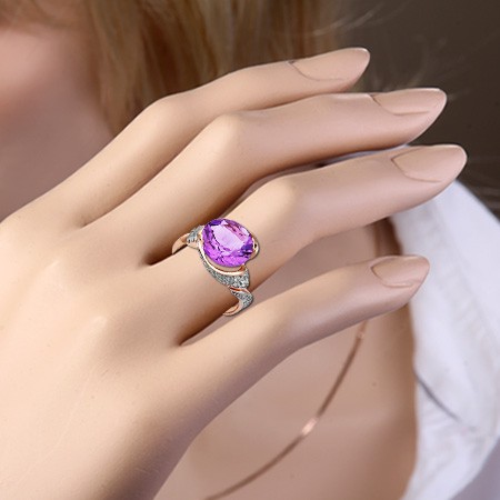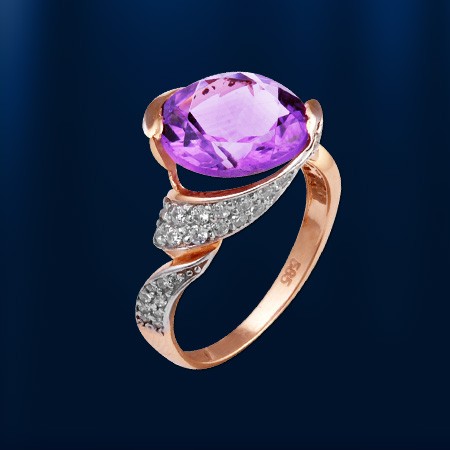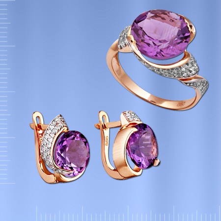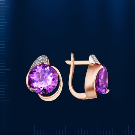 Ohrringer aus Rotgold 585° verziert mit 2 Amethyst (¢ 10.0 mm) und Fianitenen ¢ 1.0 mm. Diese schillernden Ohrringer werden Sie mit Schönheit und Eleganz begeistern.