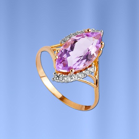 Der Ring ist aus russischen Rotgold 585° mit Amethyst (16.0 x  7.0 mm). Hohe ca.20.0 mm