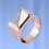 Ширина шики 7,6 мм, толщина шинки 0,5 мм, высота верхней части 3,3 мм, длина верхней части 13,6 мм, ширина 9,4 мм. На внутренней закрытой поверхности кольца нанесен штамп с пробой золота. Золото 585 пробы. Алмазная обработка.