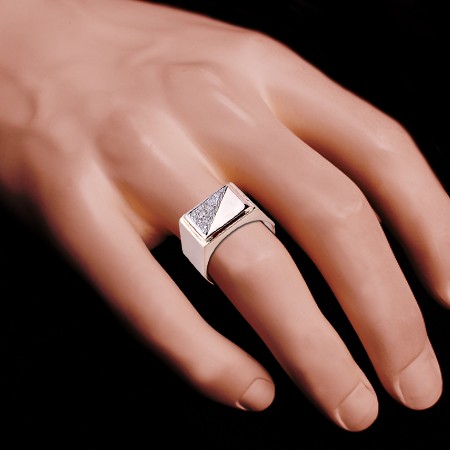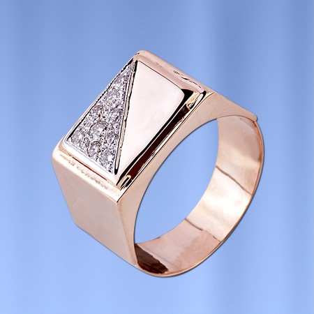 Мужской перстень из русского красного и белого золота 585 пробы с бриллиантами.