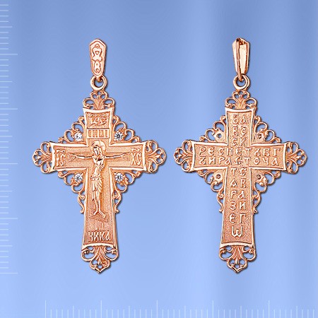 русского золота 585 пробы с распятием. Сильный и красивый литой узорчатый крест не только украсит ваши грудь и шею, но и защитит от напастей и несчастий.