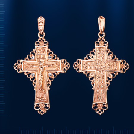 цирконами диаметром приблизительно 1.25 мм. На задней части креста имеется надпись "Спаси и Сохрани".