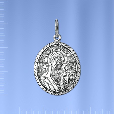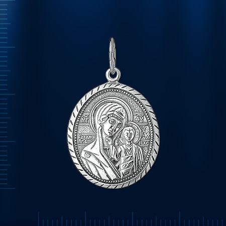 Икона из чернёного серебра 925 пробы с рельефным изображением Казанской Божей Матери