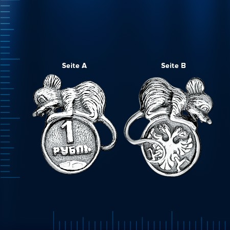 Серебряная "Денежная мышь" из чернённого серебра 925 пробы. Высота пр.18.0 мм., ширина пр.14.0 мм.