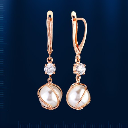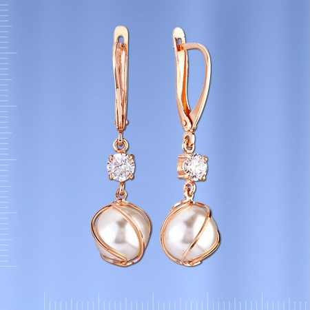 Вставки: 2 жемчужины ¢ 07.0 мм., 2 фианита ¢ 5.0 мм.