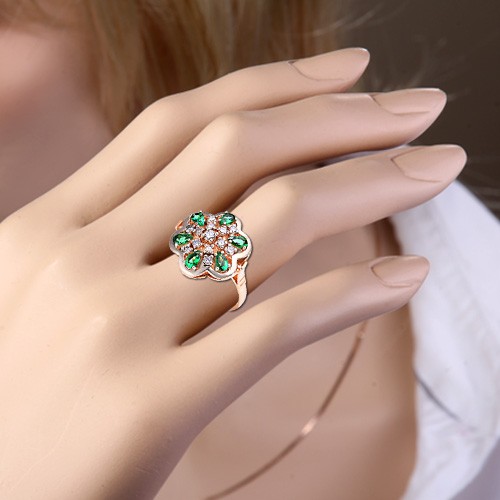 13 бриллиантов и 6 нано-изумрудов ( 5.0 х 3.0 мм). Высота декоративной части кольца пр.18.0 мм