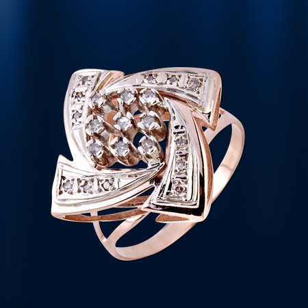Изящное золотое кольцо с бриллиантами для красивых женских пальчиков! Кольцо из русского красного, комбинированного с белым, золота 585º.