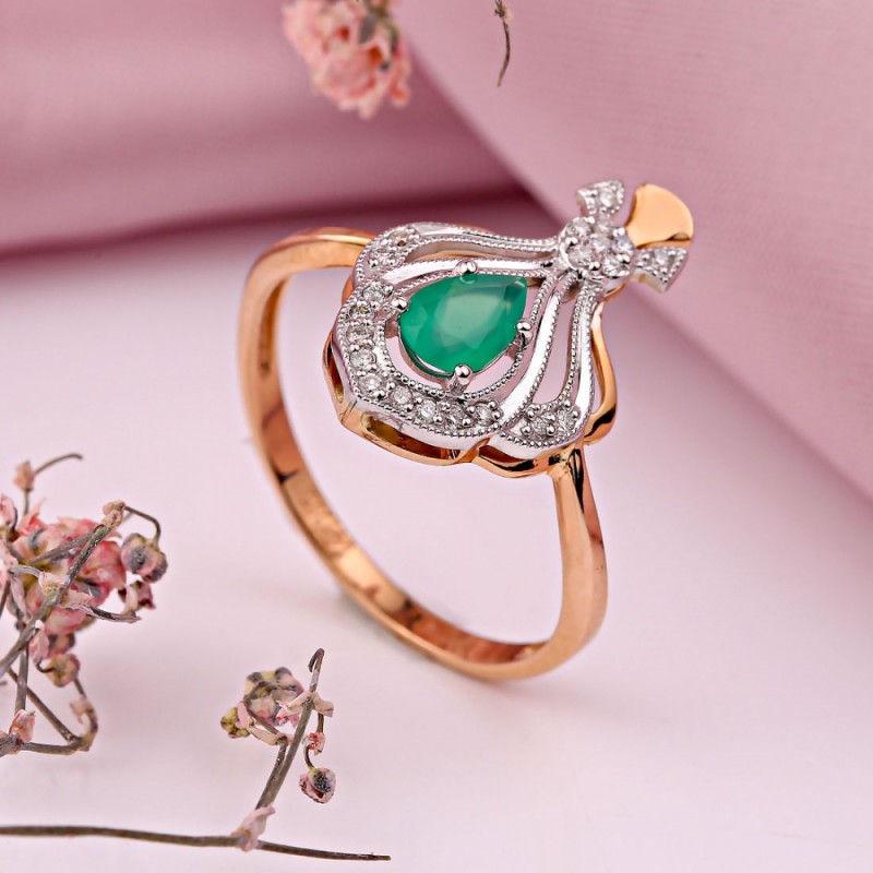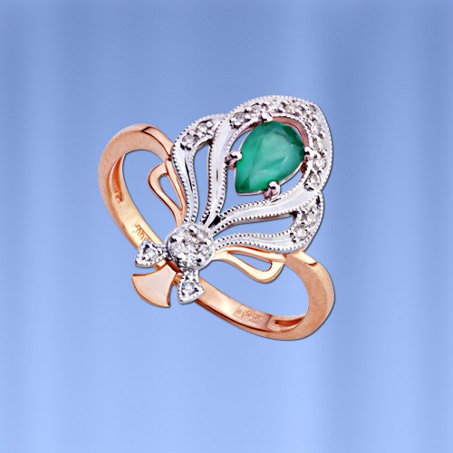 Goldring mit Diamanten und Chrysopras kaufen. Ring aus Rot-Weißgold 585° verziert mit Diamanten und Chrysopras wird Sie mit Schönheit und Eleganz begeistern.