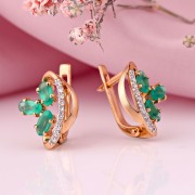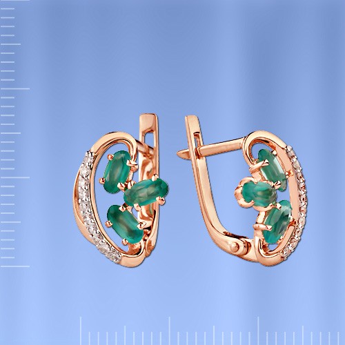 Серьги золотые с бриллиантами и хризопразами.