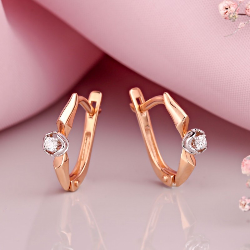 Стильные золотые серьги из красного и белого золота с бриллиантами - роскошный подарок любимой. Годы идут, меняется мода, но золотые серьги по-прежнему привлекают своей свежестью и красотой.
