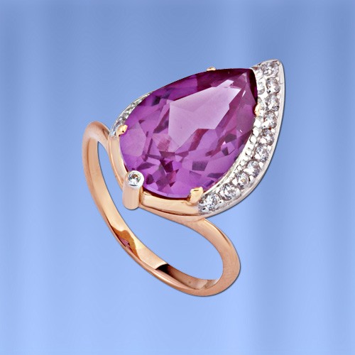 Der Ring ist aus russischen Rot/Weißgold 585° mit Korund Alexandrit 15.0 x 10.0 mm. 1.490, 21 Fianiten ¢ 1.5 mm. 0.040., 1 Fianiten ¢ 1.25 mm. 0.010 Hohe ca.21.0 mm