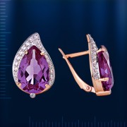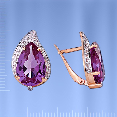 Ohrringer aus Rot/Weißgold 585° verziert mit 2 Korund (15.0 x 10.0 mm 2.960 Ct) 42 Fianitenen ¢ 1.5 mm 0.230., 2 Fianitenen ¢ 1.25 mm 0.010. Diese schillernden Ohrringer werden Sie mit Schönheit und Eleganz begeistern