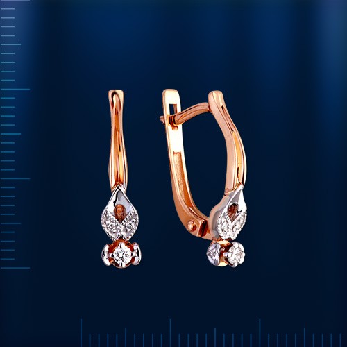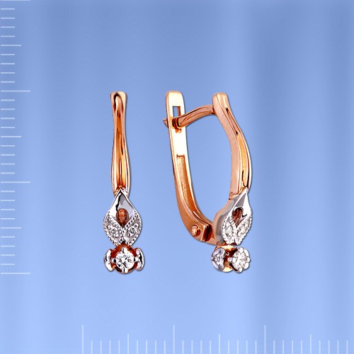 Стильные золотые серьги из красного и белого золота с бриллиантами - роскошный подарок любимой. Годы идут, меняется мода, но золотые серьги по-прежнему привлекают своей свежестью и красотой.