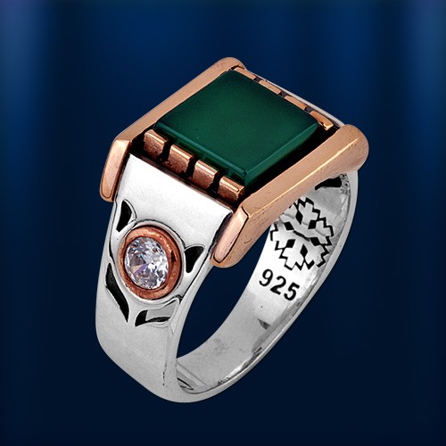 Herren Ring aus Silber 925 ° verziert mit Chrysopras (10,0 x 10,0 cm). Hohe ca.13,0 mm