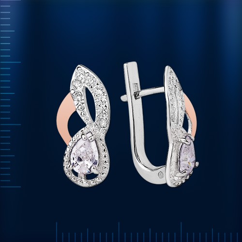 Стильные серьги Мариса из серебра 925 пробы комбинированные с золотом 375 пробы. Изделия изготовлены по специальной технологии. Украшения выглядят как из белого и красного золота, но стоят, как серебро!