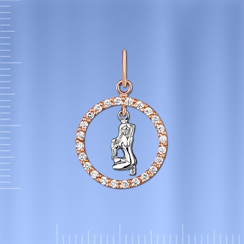 Дева - Знак Зодиака из красного и белого золота 585 пробы украшенная сверкающими фианитами