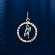 Круглая подвеска Знак Зодиака "Водолей" из красного и белого золота 585°украшенная сверкающими фианитами