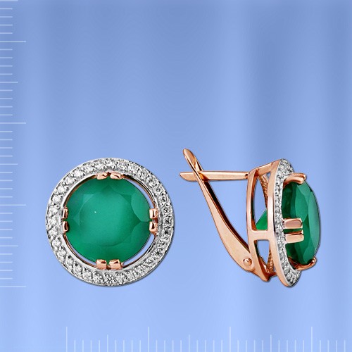 Ohrringer aus Rot/Weißgold 585° verziert mit 2 Chrysopras (10.0 x 10.0 mm 1.296 Ct) und 64 Fianitenen ¢ 1.0 mm. Diese schillernden Ohrringer werden Sie mit Schönheit und Eleganz begeistern. Mit einem sicheren und zuverlässigen Verschluss.