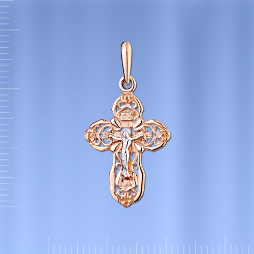 Kreuzanhänger mit Kruzifix Russisches Gold 585 in Deutschland, orthodox. Die Christusfigur besteht aus Weißgold 585, der Kreuz ist aus