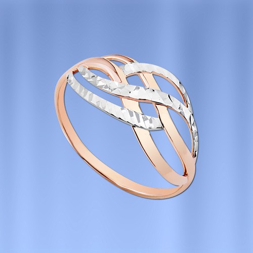 красного золота 585°, комбинированного с белым, с лазерной обработкой. Изделия такого типа крайне популярны среди молодёжи и людей среднего возраста. Такие украшения хороши, в частности, тем, что одинаково удачно сочетаются и с офисными, и с повседневными, и с выходными нарядами