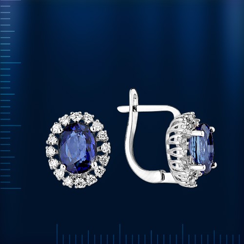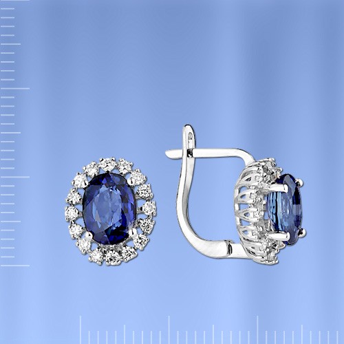 Вставки: бриллианты 32 D 0,43 Ct. G-HVS, сапфиры овальные (8.0 х 6.0 мм) 2 Sh 3,52 Ct.