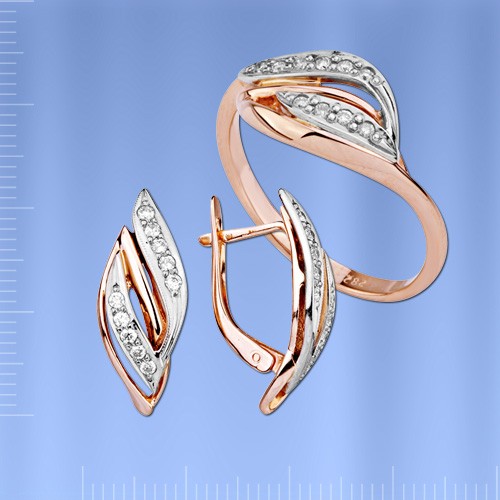 Garnitur aus Russischem Rot/Weißgold 585° mit Brillianten