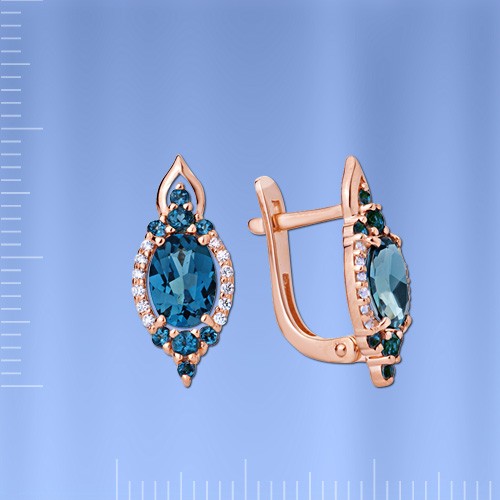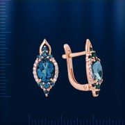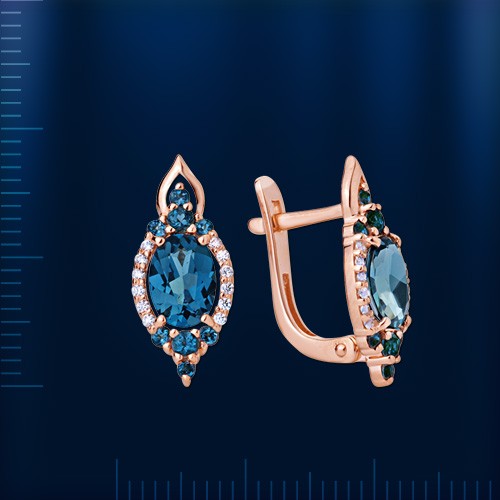 Вставки: 2 лондонского топаза (круг ¢ 1.5 мм 0.048 ct), 2 лондонского топаза (овал 7.5 х 5.0 мм 0.352 ct), 4 лондонского топаза (круг ¢ 2.0 мм 0.036 ct), 24 сверкающих