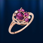 Einsatz: Birnenrhodolit (4,0 x 3,0 mm 0,04), Birnenrhodolit (7,0 x 5,0 mm 0,164), Rhodolit (¢ 2,0 mm 0,01), Rhodolit (4,0 x 2,0 mm 0,021), Rhodolith (4,0 x 3,0 mm 0,044), 14 funkelnd Zirkonia ¢ 0,8 mm 0,014, 2 Zirkonia ¢ 1,75 mm 0,016