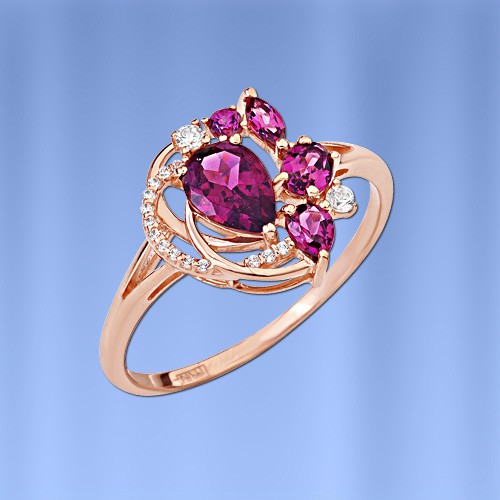 Atemberaubend satte Farbe des Rhodoliths in einem Ring aus russischem