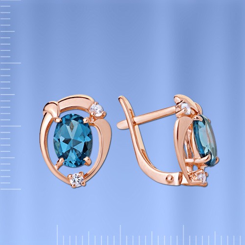 Einsätze: 2 Londoner Topase (oval 7,0 x 5,0 mm 0,352 ct), 4 funkelnde Zirkonia ¢ 1,75 mm 0,032