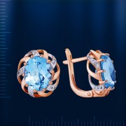 Вставки: 2 голубого топаза (овал 8.0 х 10.0 мм 1.242 ct), 30 сверкающих