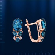 Вставки: 2 лондонских топаза (овал 9.0 х 7.0 мм 0.83 ct), 4 лондонских топаза (овал 4.0 х 3.0 мм 0.18 ct), 2 лондонских топаза (¢ 3.0 мм 0.05 ct), 2 лондонских топаза (¢ 2.25 мм 0.02 ct), 4 сверкающих фианита ¢ 1.5 мм 0.024