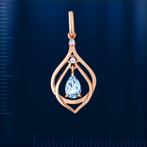 топаз (груша 6.0 х 4.0 мм 0.095), 2 сверкающих фианита ¢ 1.5 мм 0.012