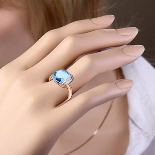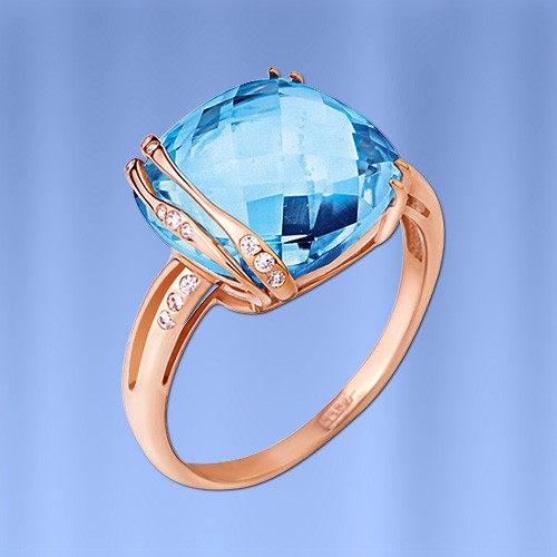 Выразительное и нежное кольцо из красного золота с восхитительным небесно-голубым топазом. Украшение, словно создано дарить своей обладательнице изысканность, великолепие и лучезарное настроение каждый день!