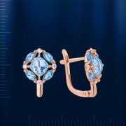 Вставки: 2 голубого топаза (антик бриол 5.0 х 5.0 мм 0.284 ct), 8 голубых топазов (4.0 х 2.0 мм 0.16 ct), 8 сверкающих