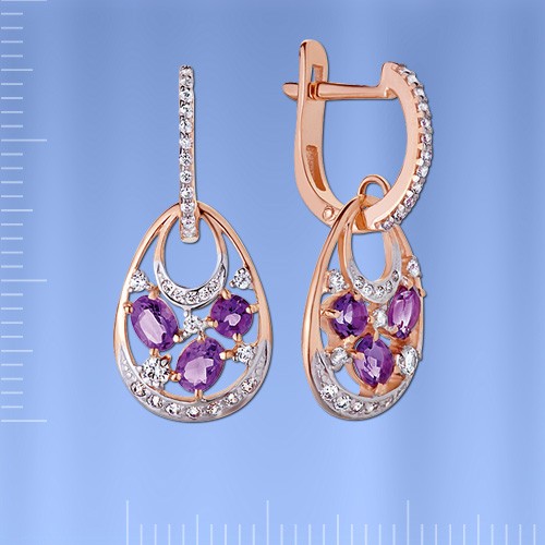 mit  2 Amethyst ¢ 3.0 mm 0.04,  2 Fianit ¢ 2.0 mm 0.024, 4 Amethyst (4.0 x 3.0 mm 0.124), 24 Fianiten ¢ 1.0 mm 0.048, 22 Fianiten ¢ 1.25 mm 0.066, 10 Fianiten ¢ 0.8 mm 0.01