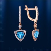 Вставки: 2 топаза (тр 6.0 х 6.0 мм 0.33), 2 сверкающих фианита (¢ 1.75 мм 0.016), 22 сверкающих
