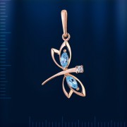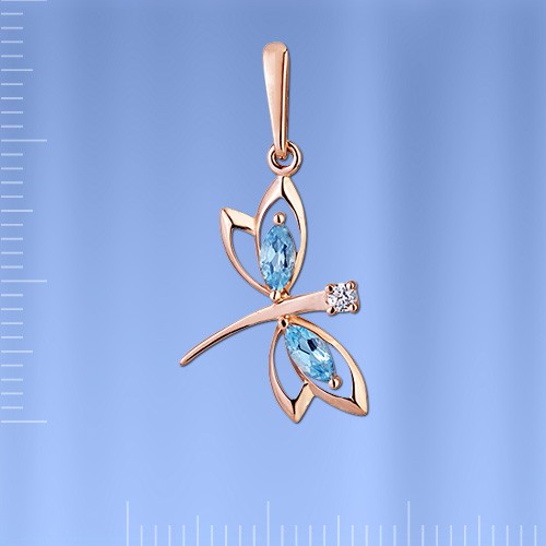 красного золота 585° в форме стрекозы и украшена нежно - голубым топазами и сверкающим фианитом!