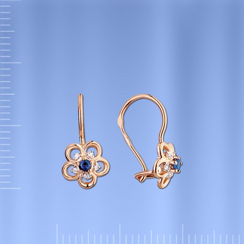 Очаровательные милые серьги из красного золота 585 пробы, украшенные сверкающими бриллиантами и натуральными сапфирами! Годы идут, меняется мода, но золотые серьги по-прежнему привлекают своей свежестью и красотой!