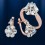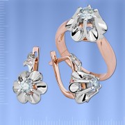 Бриллианты на кольце и на серьгах закреплены открытой закрепкой на возвышенных золотых крапанах, что особенно подчёркивает красоту камня и позволяет ему сверкать завораживающим блеском.