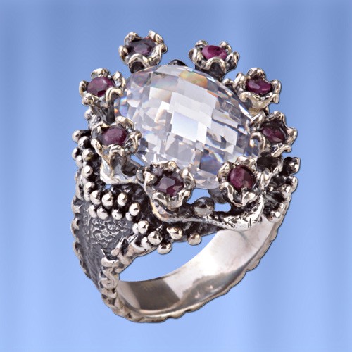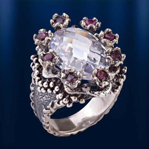 Кольцо серебряное. Рубины & Фианит